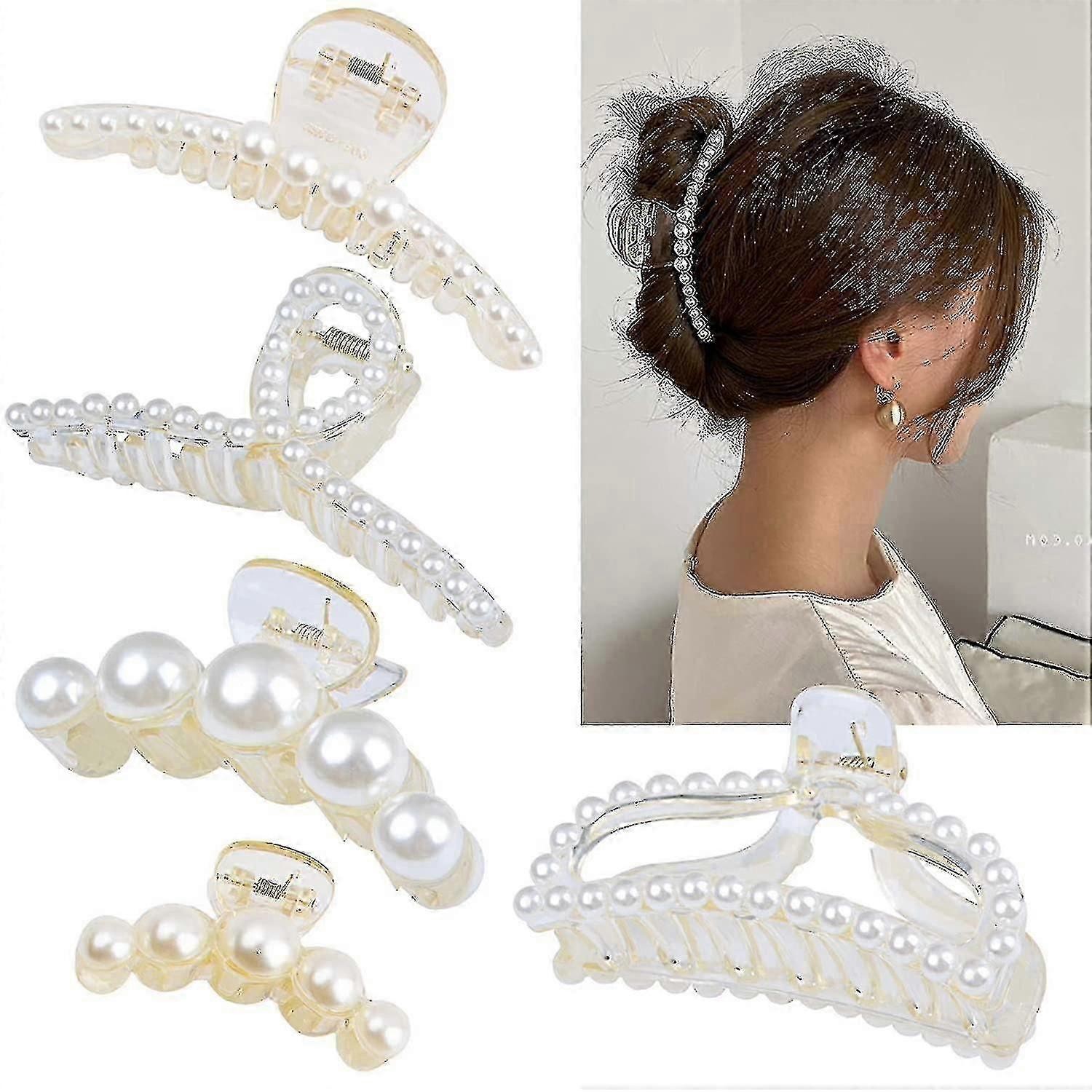 5 Pcs Large Pearl Hair Claw Clips White Black Hair Clips Thick Long Hair Jaw Clips Barrettes Hair Accessories