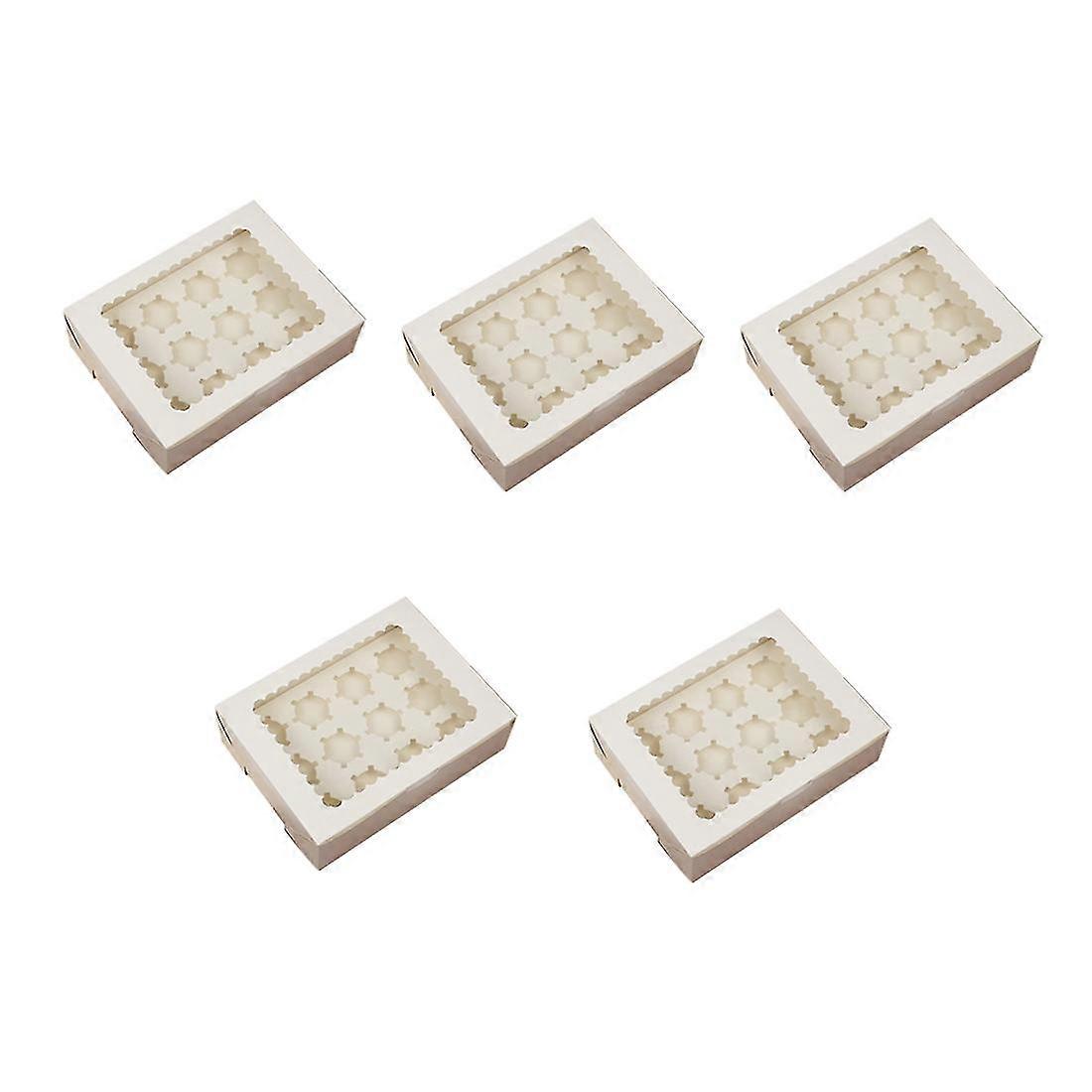 5 Pcs Cupcake Box With Window White Brown Kraft Paper Boxes Dessert Mousse Box 12 Cup Cake Holders