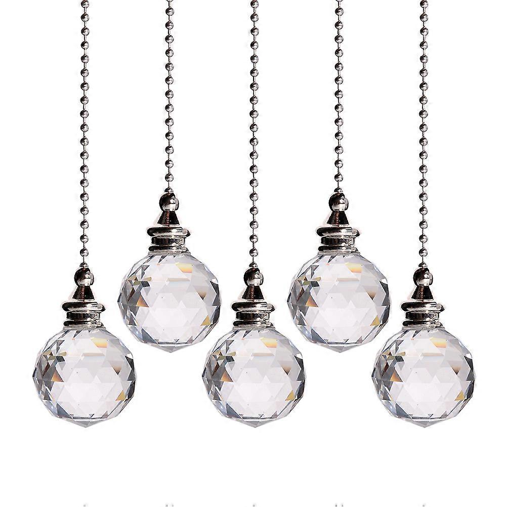 5pcs Crystal Ball Pendant Fan Lamp Pull Chain Home Hanging Ornament Party Decor (30mm, Transparent)