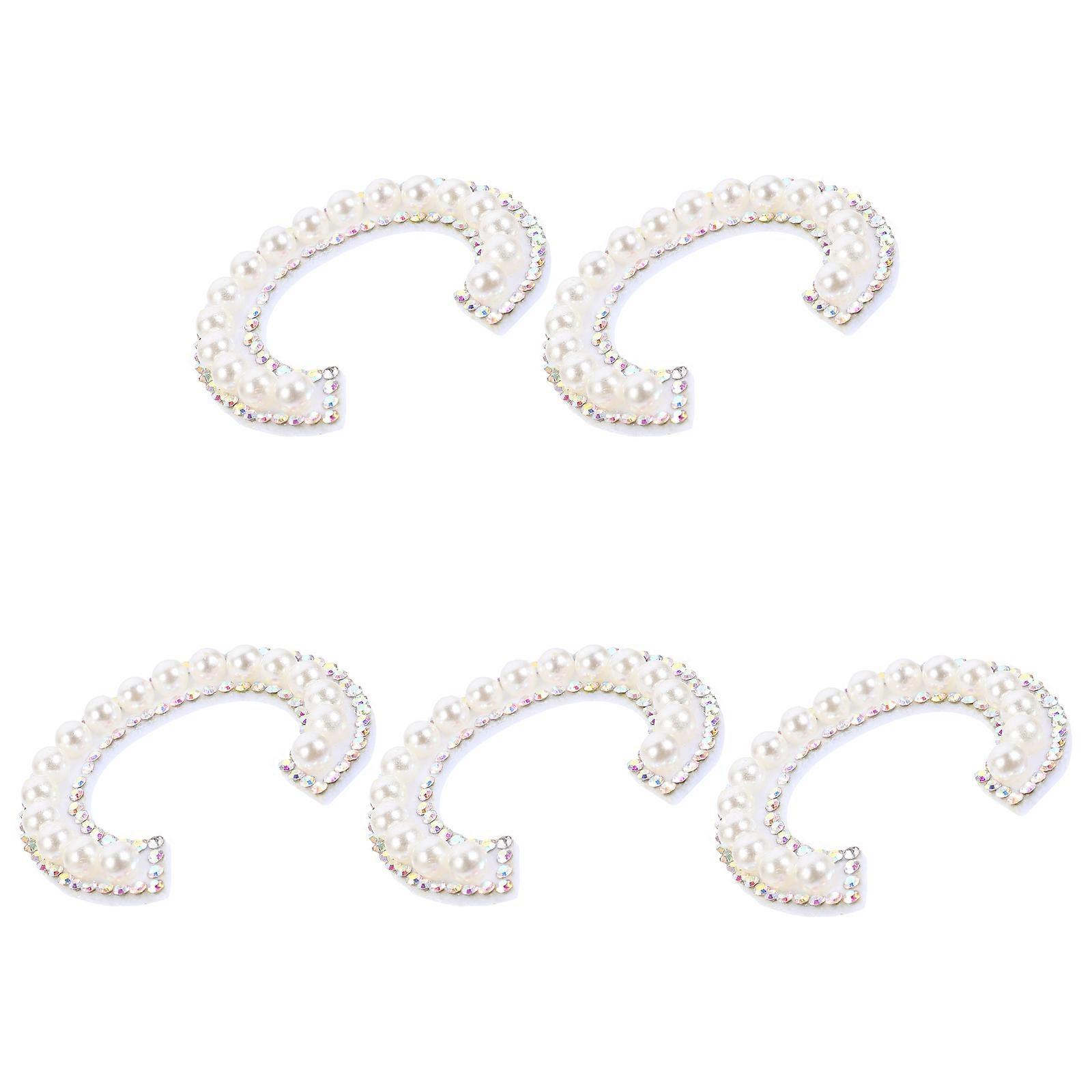 5PCS Pearl Rhinestone Alphabet Patches for Clothing, Bags, Hats – Iron On Sewing Applique for Craft Decoration and Repair