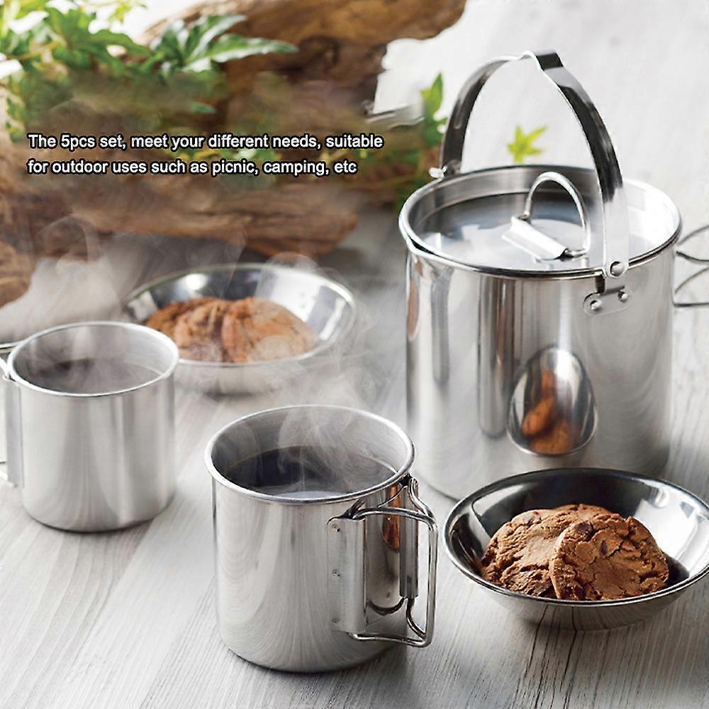 5pcs Camping Cookware Set Outdoor Portable Picnic Cookware Kit Stainless Steel Travel Tableware Cooking Accessory