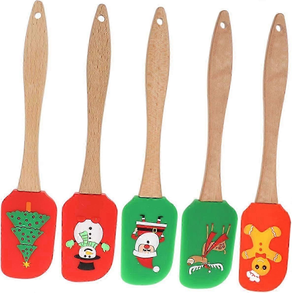 5pcs Cream Spatula Frosting Spatula Wooden Handles Silicone Baking Sheet Christmas Cake Decorating Spatula Christmas Rubber Spatula Cake Baking Scrape