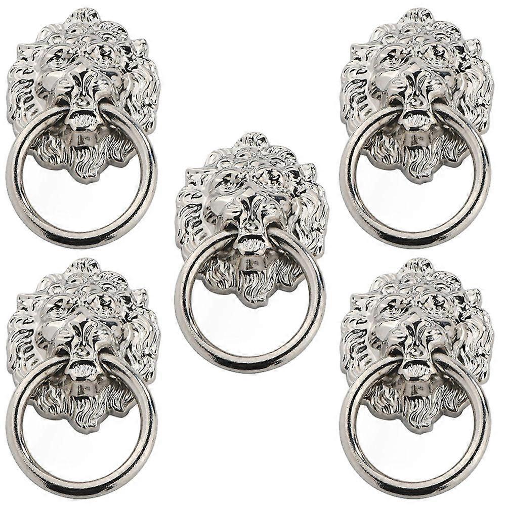 5pcs Vintage Lion Head Pull Handles, Zinc Alloy Door Rings, Unique Ergonomic Design, Sturdy & Durable Finish, Replacement for Cabinets, Cupboards,