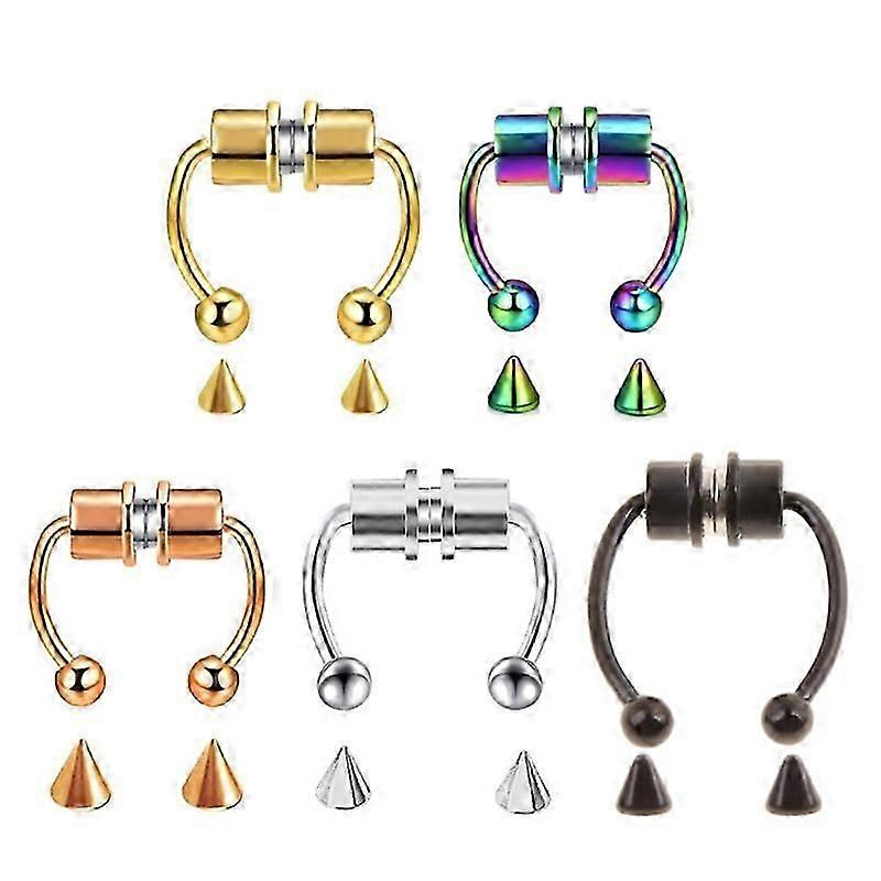 5 Pcs Fake Septum Piercing Magnetic Horseshoe Nose Ring Non Piercing Nose Hoop