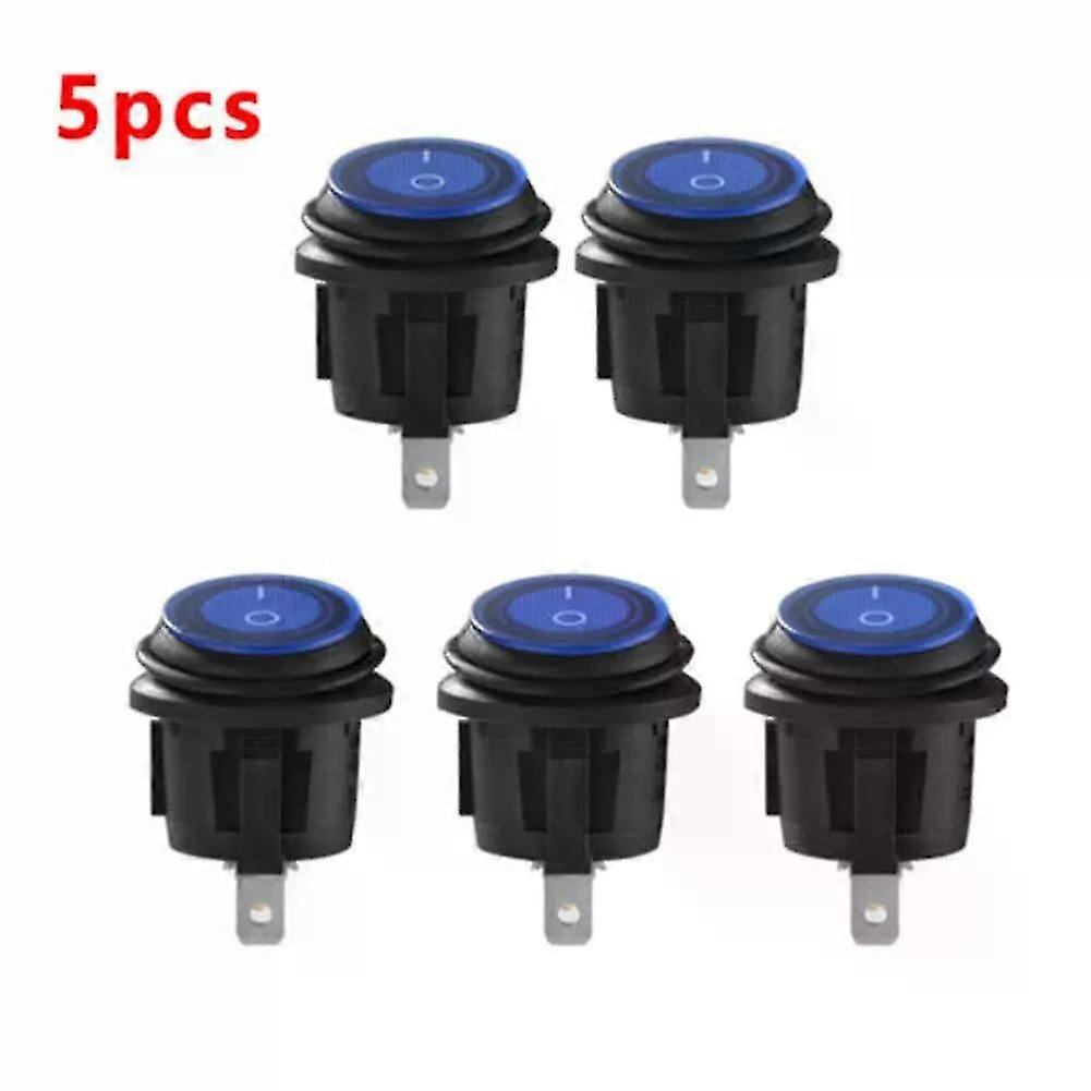 5Pcs 12V Toggle Switch Waterproof LED Lighted Round Rocker Switch Panel SPST 3 Pin Marine On Off Switch With Blue Light