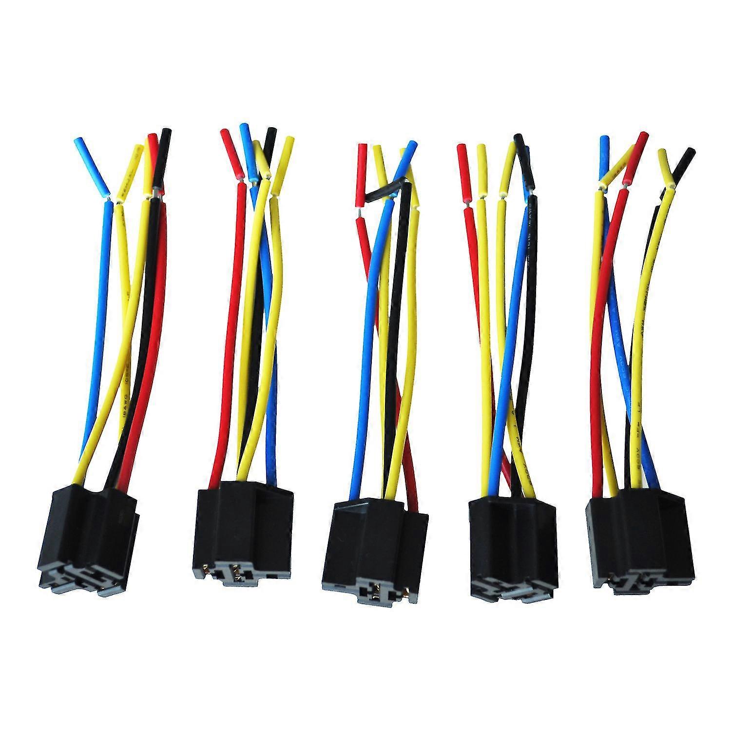 5 Pcs 5 Pin Wires Cable Relay Socket Harness Connector Dc 12v For Car Auto