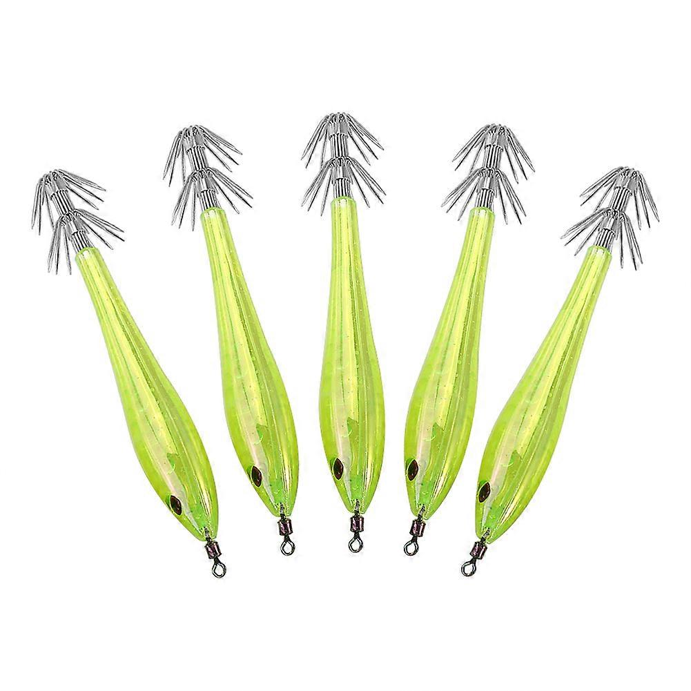 5pcs 9.5cm Plastic 3D Eyes Hard Squid Fishing Lures Bait (yellow)