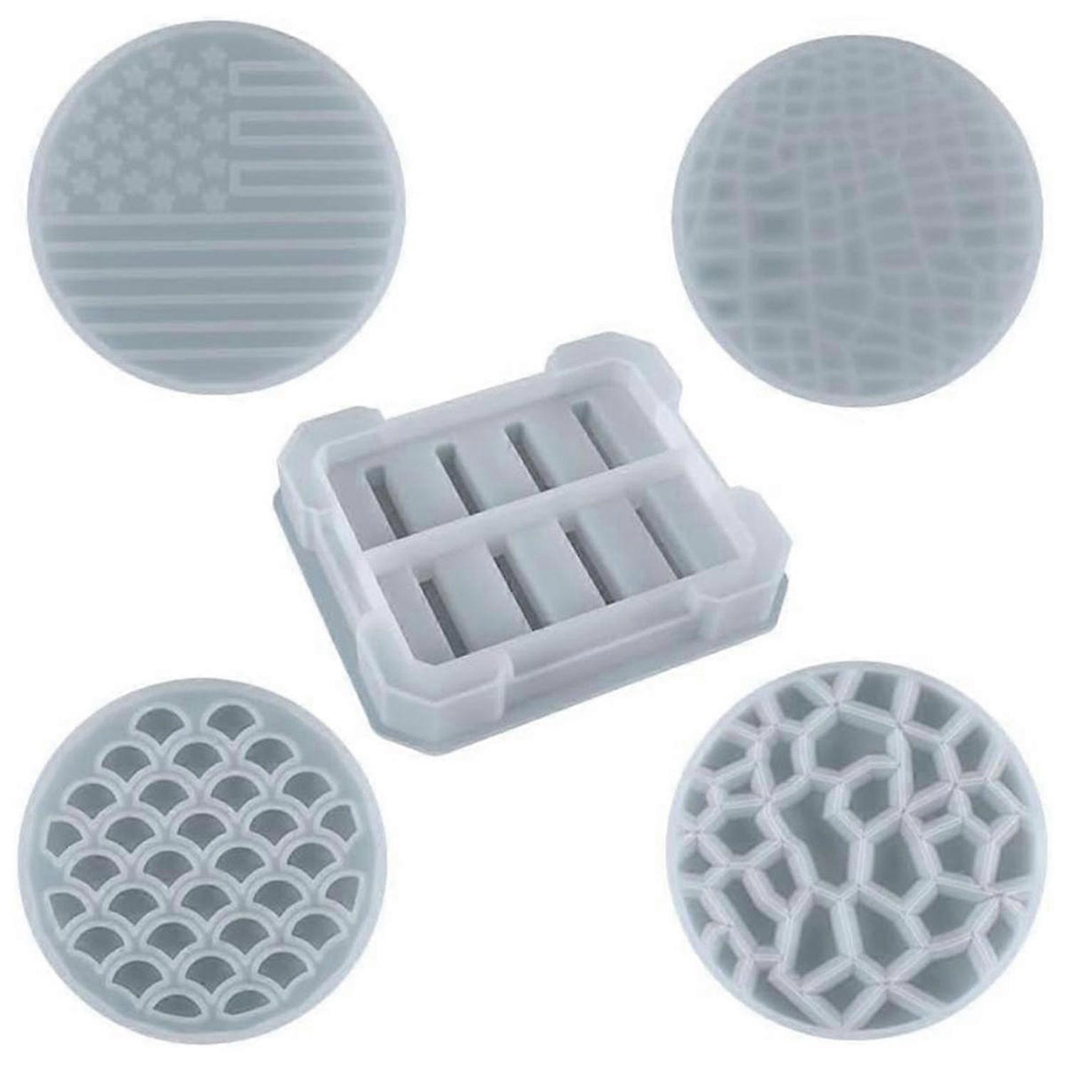 5 Resin Cast Coaster Molds, Including 4 Circular Coaster Molds and 1 Square Coaster Holder Epoxy Resin Mold Silicone