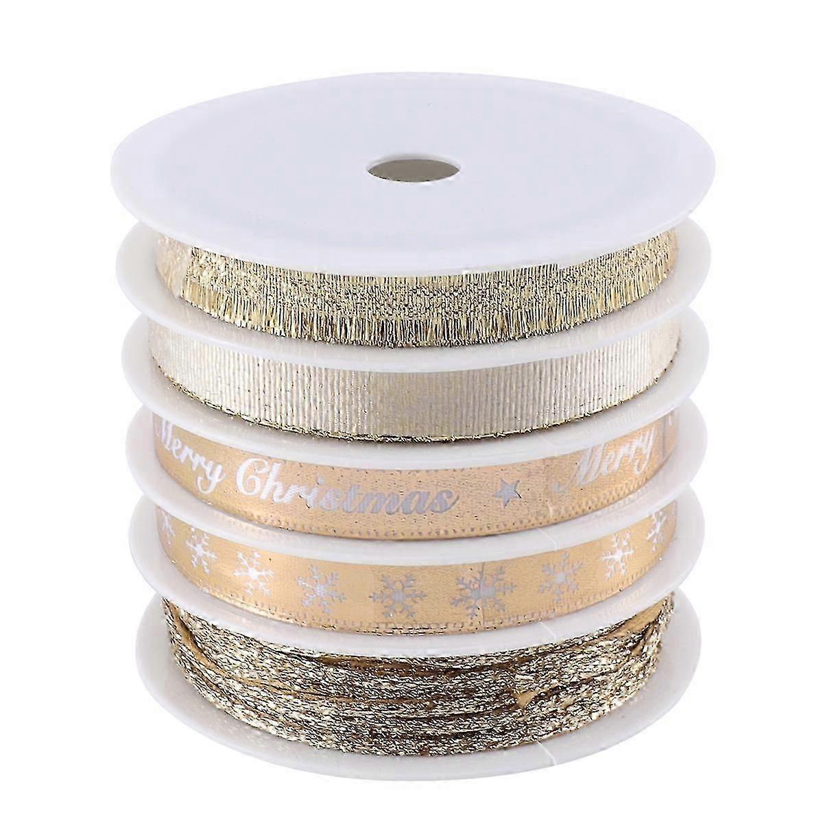 5 Rolls Of 25m Length Christmas Printed Ribbon Holiday Gift Decorative Band Ribbon For Wrapping Diy Crafts(golden)