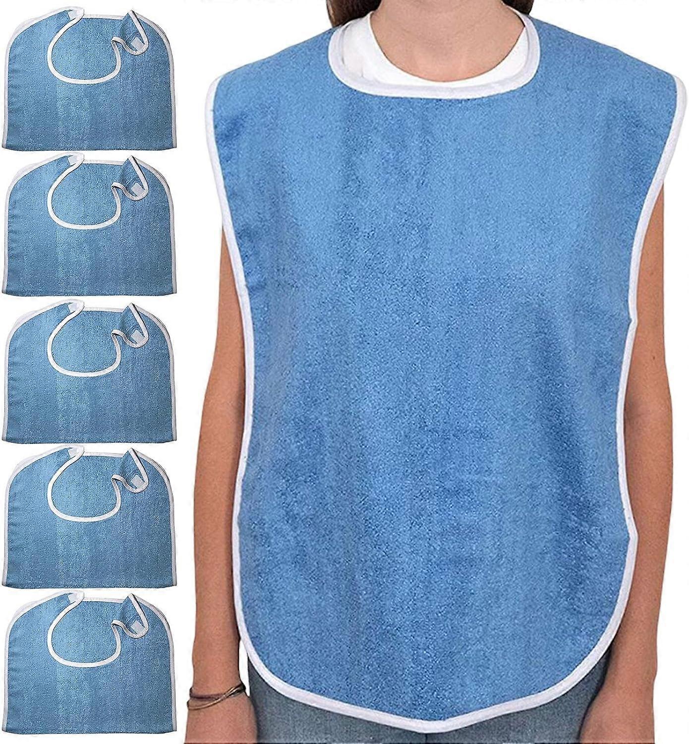 5 Bibs For Adults, Washable Adult Bib For Women And Men, Adult Bibs For Eating, Adult Terry Bibs, Protectors Terry Cloth Clothing Reusable Bibs