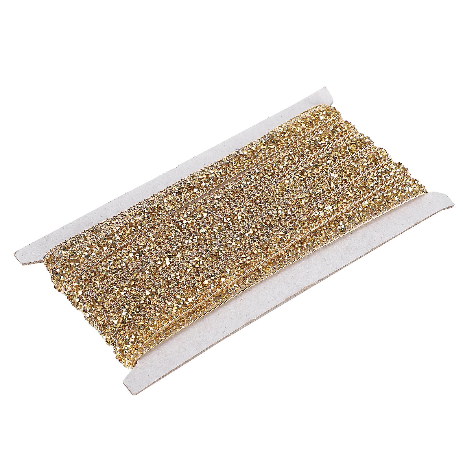 5 Yards Rhinestone Ribbon Crystal Mesh Roll Wrap Plastic Craft Decorations 1.5cm Golden