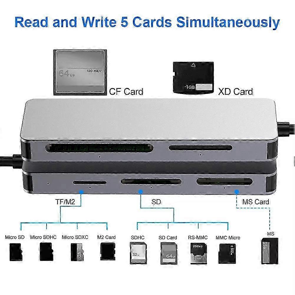 5-in-1 CF/MS/SD/TF/M2/XD Multifunction Card Reader, Type-C 3.0 Memory Memory Stick Card Reader