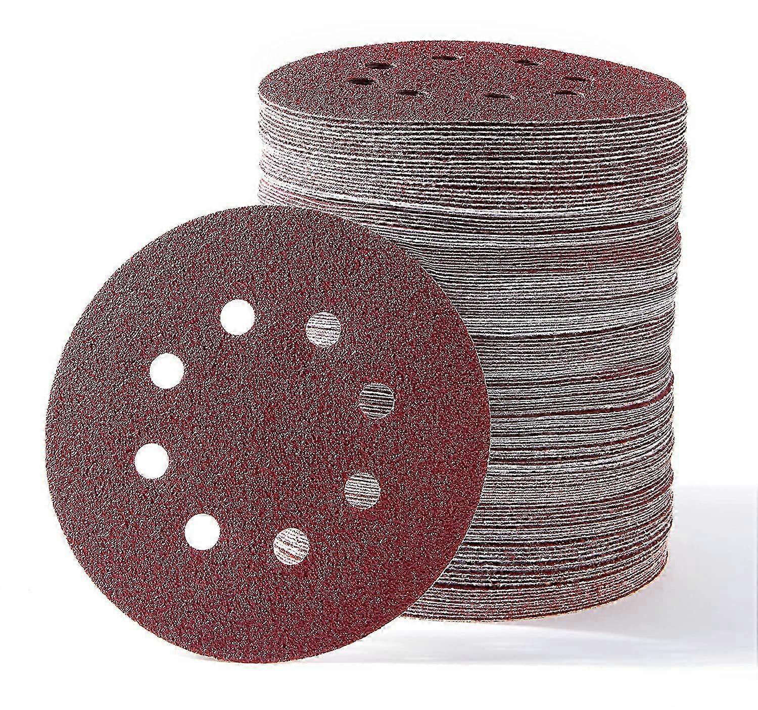 5 Inch 8 Hole Hook and Loop Sanding Discs 60 Grit Random Orbit Sandpaper, 50Pack