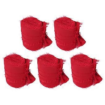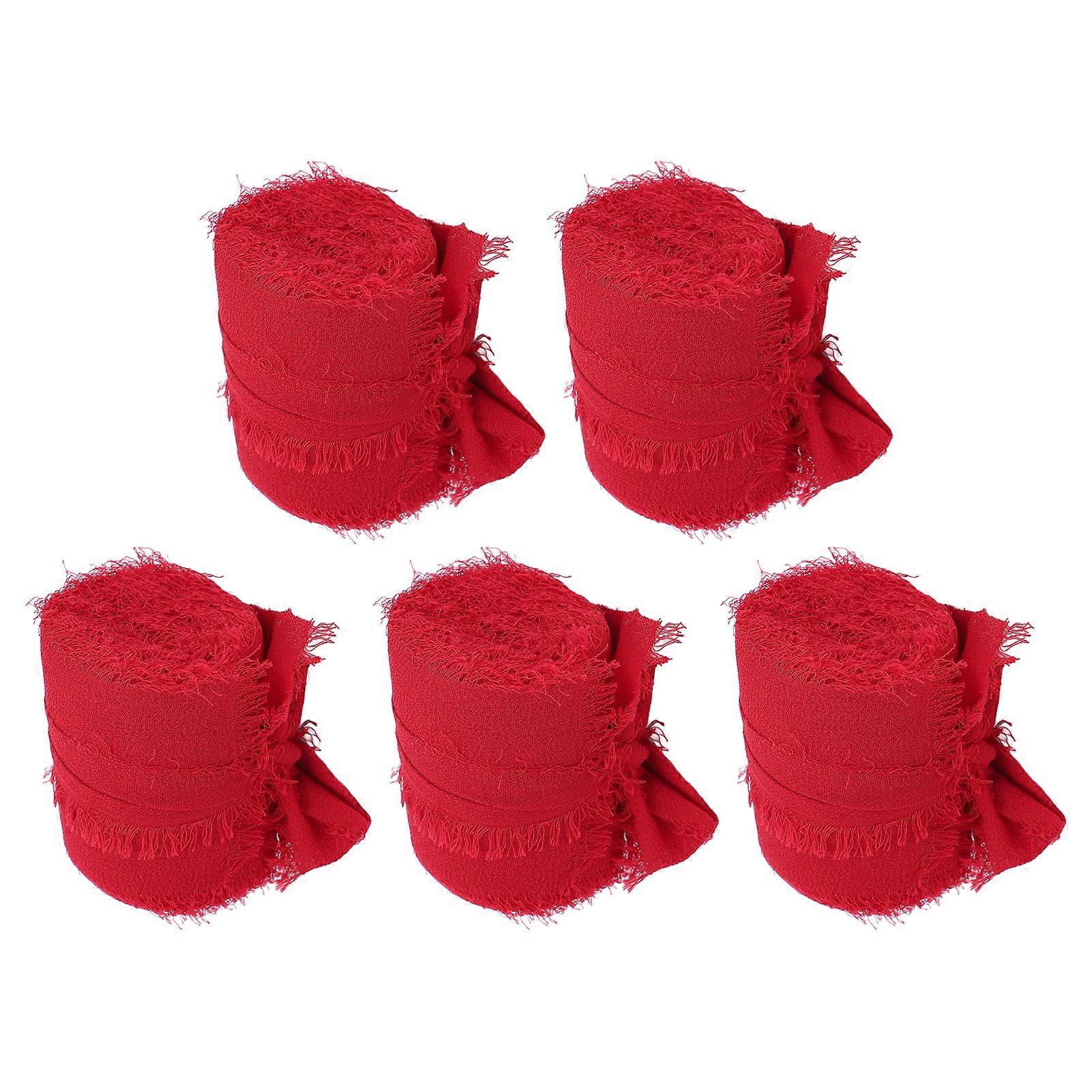 5 Rolls Red Fringed Chiffon Ribbon, Decorative Ribbon for Crafts, Invitations and Floral Arrangements