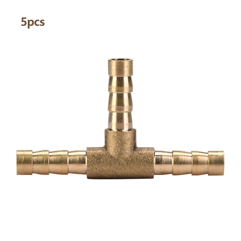 5pcs Brass T 3-Way Hose Joiner Fittings Barbed Connector Air Water Oil Gas Fuel (6mm)