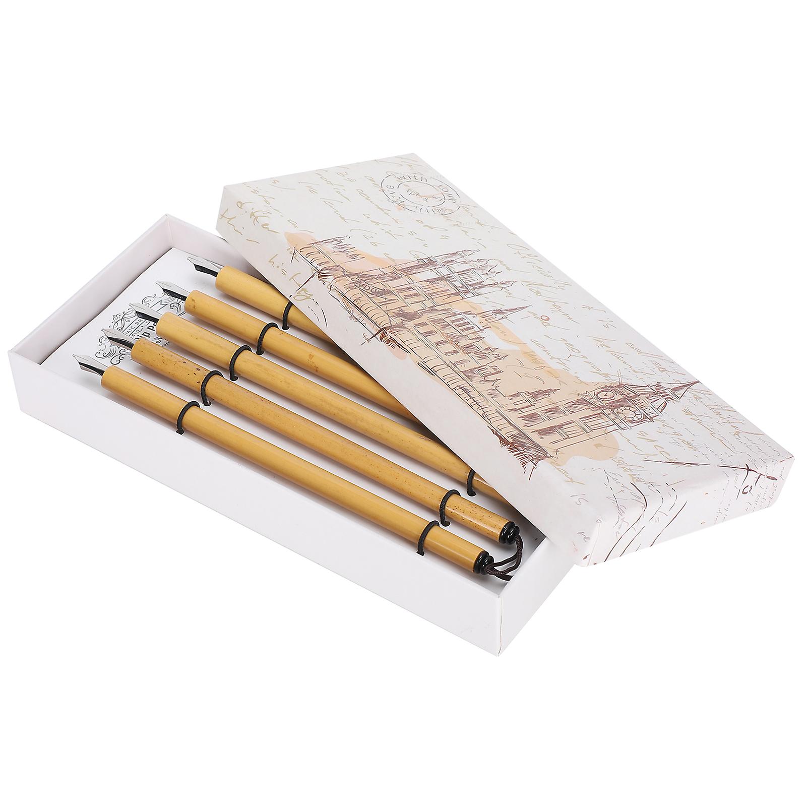 5Pcs Dip Pen Handcrafted Manga Calligraphy Vintage Bamboo Drawing Painting Kit School SuppliesOblique Nib