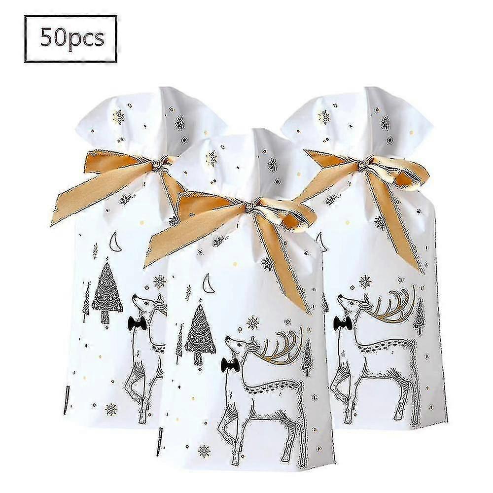 50 Pcs Christmas Gift Bags, Gift Wrapping Bags, Candy Bags, Christmas Candy Bags, Christmas Gift Bags With Ribbon