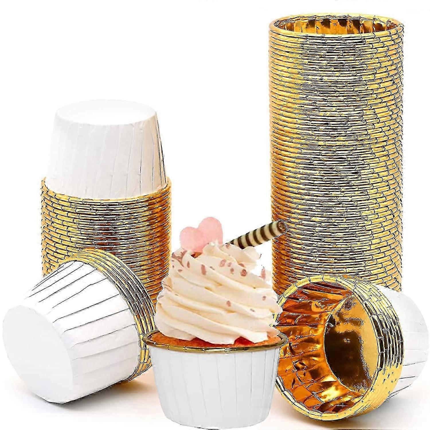 50 Pack Muffin Cups Disposable Non-stick Paper Muffin Cupcake Wrappers White/gold