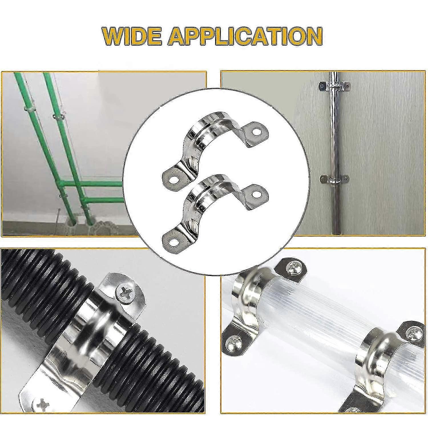 Description This clamp fits for 18mm diameter pipe. Special slotted design makes it more sturdy and not easy to deform Widely used in stainless steel pipes, rubber hoses, plastic steel pipes, gas pipes, indoor toilets, outdoor roof drain pipes, etc. U Pipe clamp, corrosion resistant, can continue to bend toughness, and screws or expansion screws can be fixed to the wall.