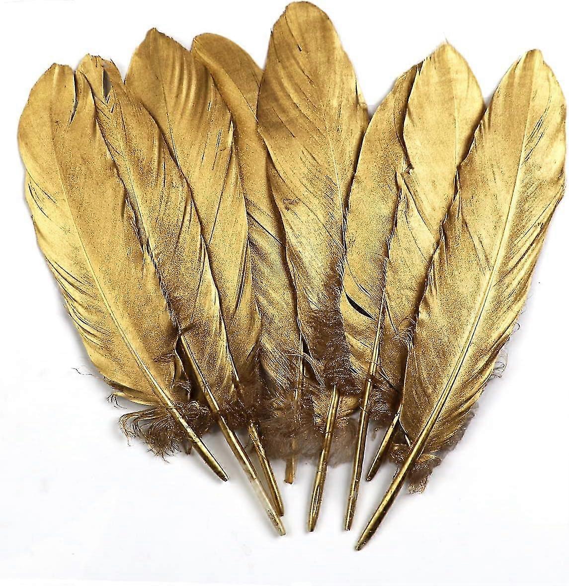 50 Natural Goose Feathers, 6-8 Inches, Gold-Tipped for DIY Crafts, Home Decor, and Party Accents