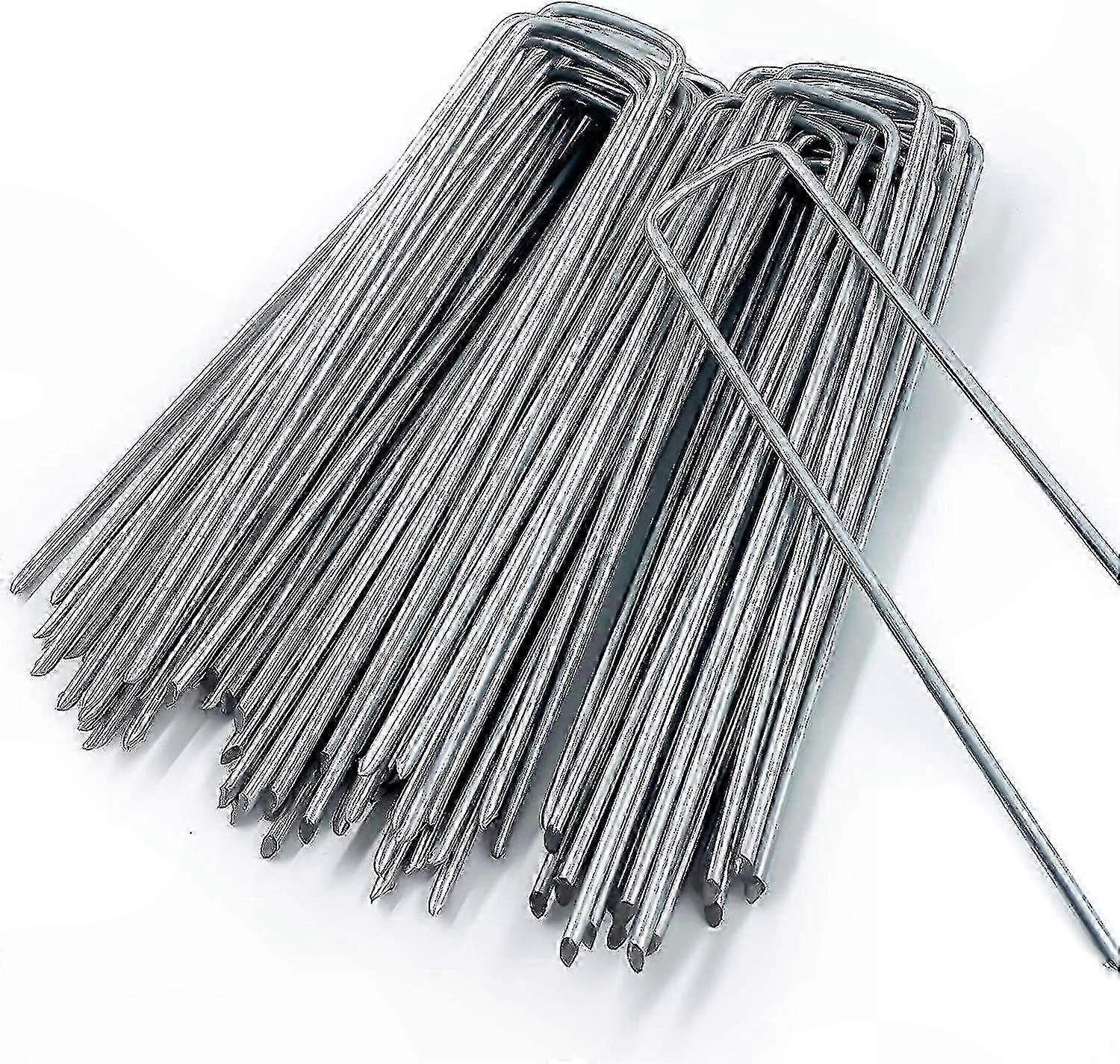 50 Pack U-Shaped Garden Stakes, 150mm Length, 25mm Width, 3mm Thickness, for Weed Control, Camping Pegs, and Garden Fencing