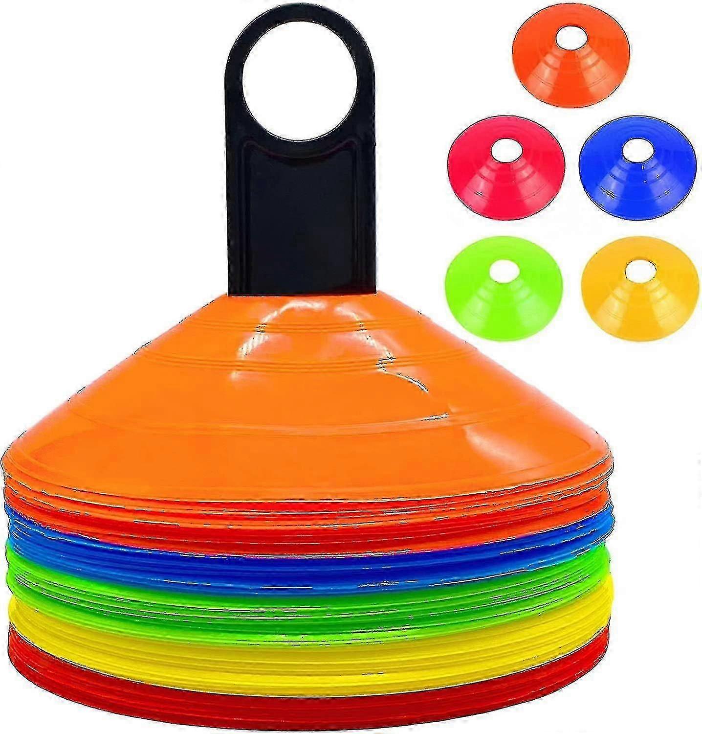 50 Pack Sports Disc Cones, Plastic Agility Cones with Holder for Training, Games, Basketball, Football, Kids, Sports