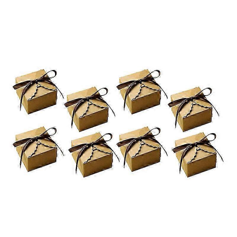 50pcs Retro Diy Kraft Paper Wedding Candy Box, Wave Pattern Carton Gift Box, With Ribbon, Wedding P