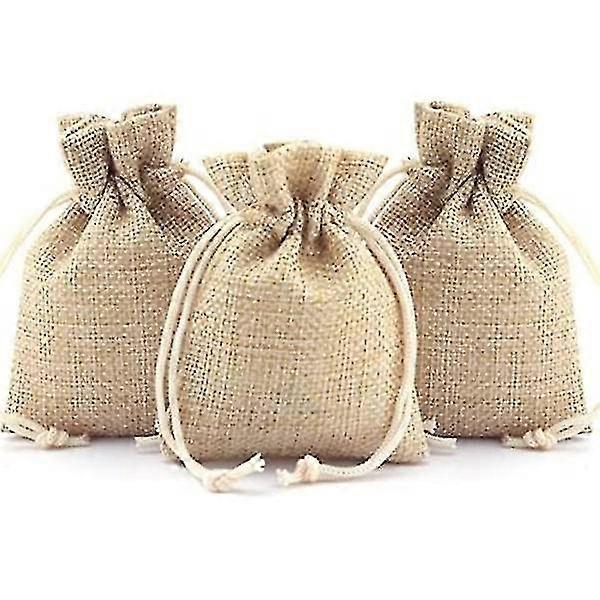 50 Pcs Burlap Gift Bags With Drawstring, Linen Burlap Bags Candy B 7x9cm