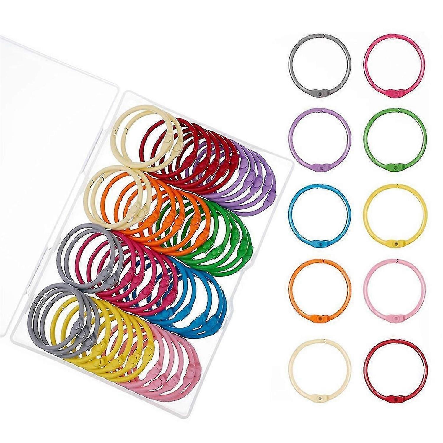 50PCS Metallic Loose Leaf Binder Rings 1 1/5 Inch Colorful Book Rings
