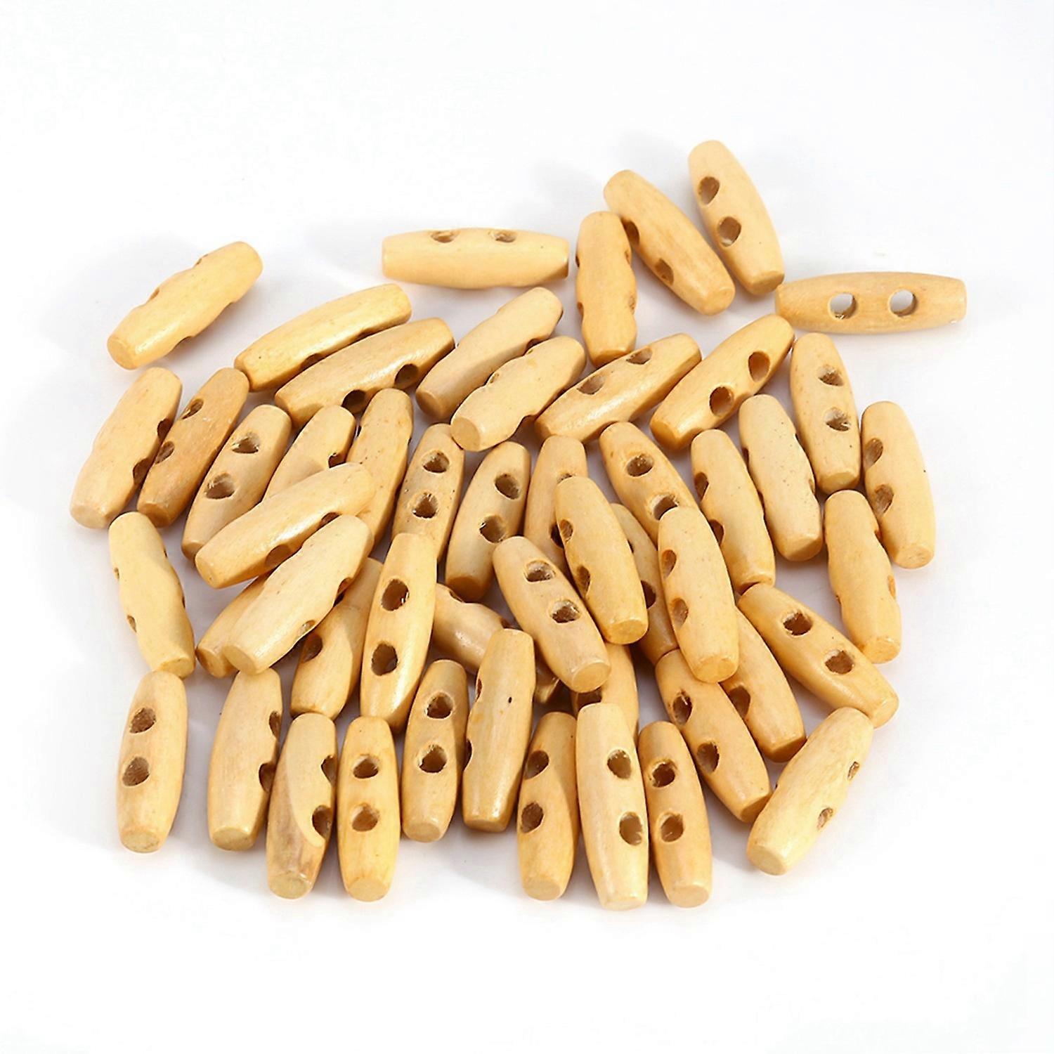 50pcs/Lot Button Wooden 2 Holes Coat Duffle Toggle Wood Horn Sewing Knitting Buttons 30mm