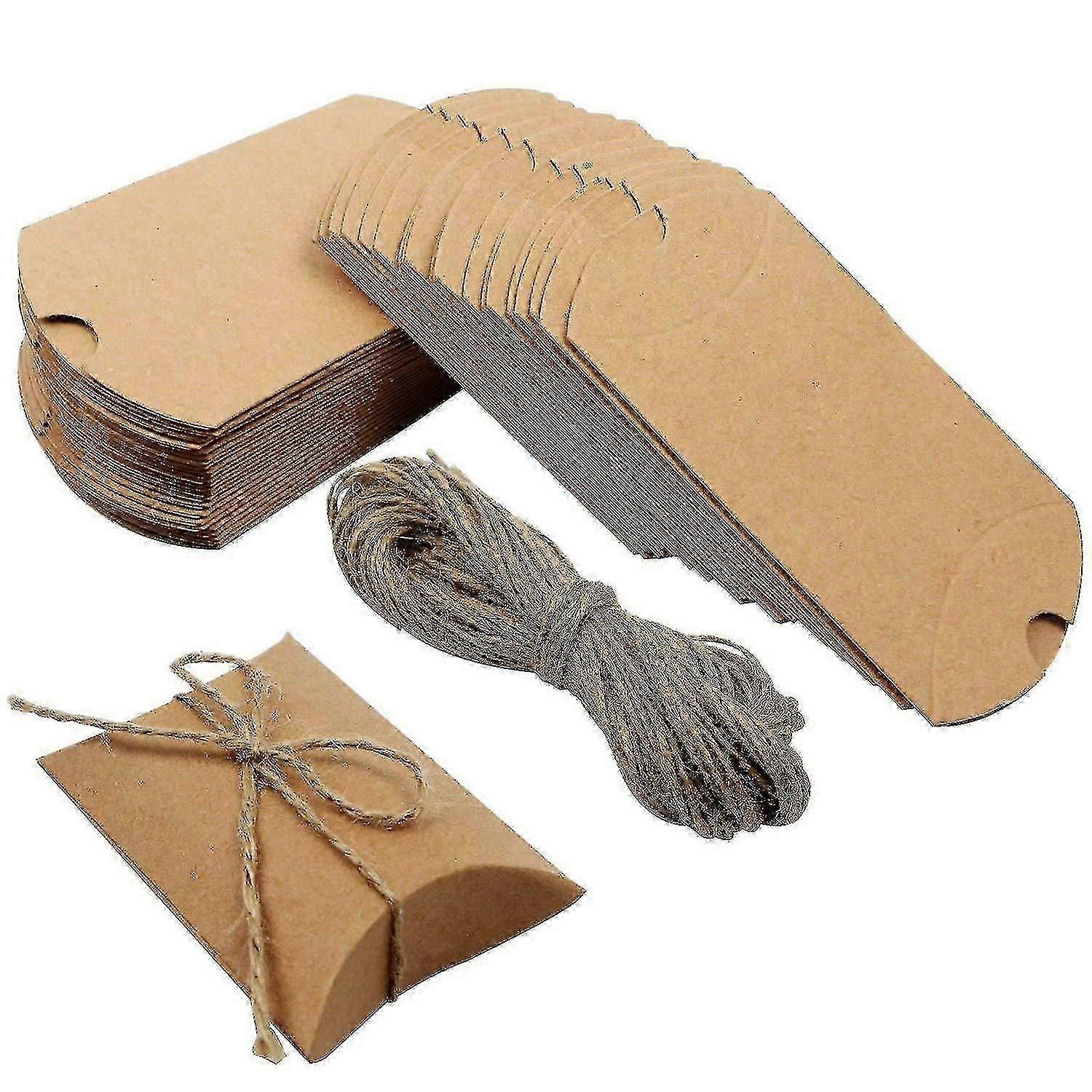 50 Pieces Gift Boxes Kraft Gift Bags Candy Boxes With Vintage Hemp Rope For Wedding Party