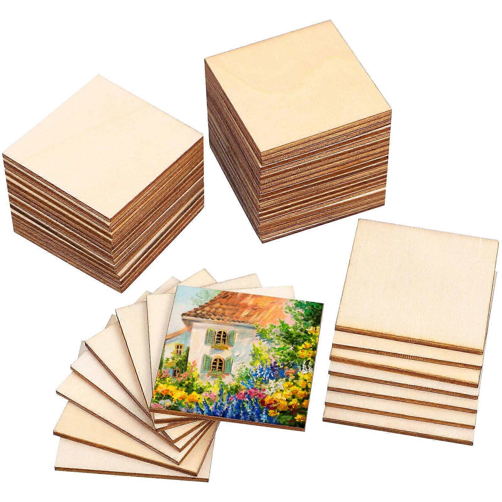 50pcs Unfinished Wood Pieces Blank Cutout Square Slices for DIY Wooden Craft