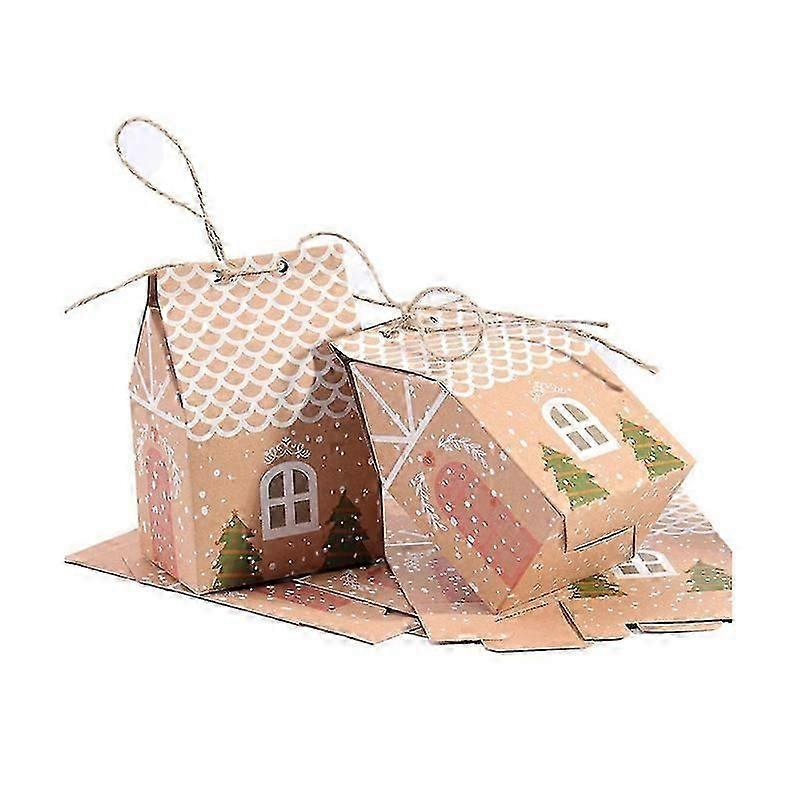 50PCS Kraft Paper House Shape with Rope Candy Bag Gift Bag Cookie Packaging Box Christmas Pendant P