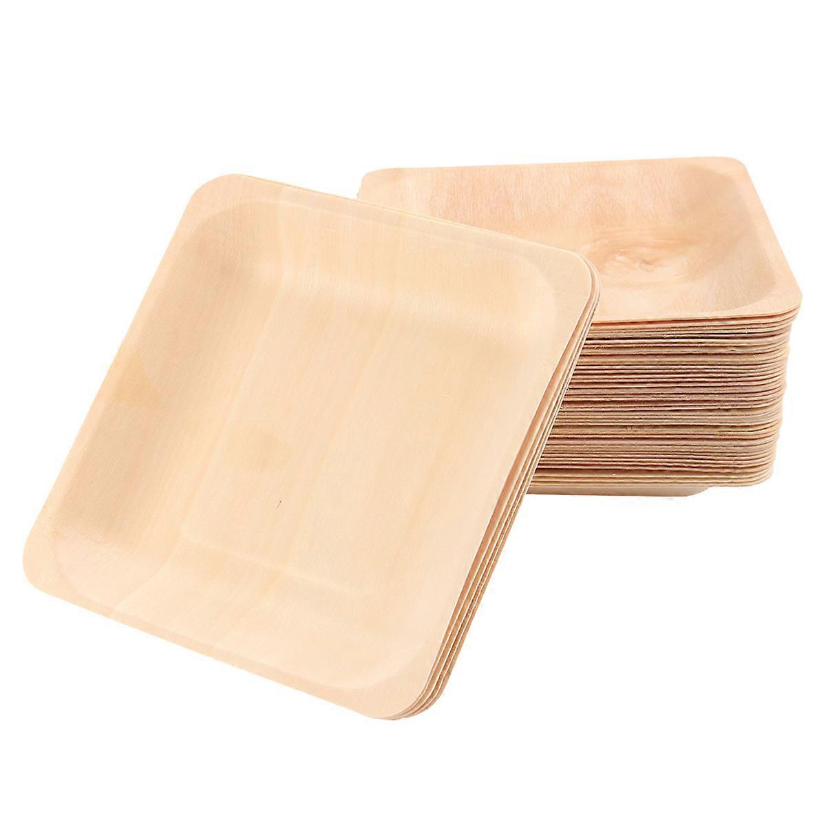 50PCS Disposable Wooden Plate Square Tableware Party Plates for Wedding Restaurant Picnic Birthday