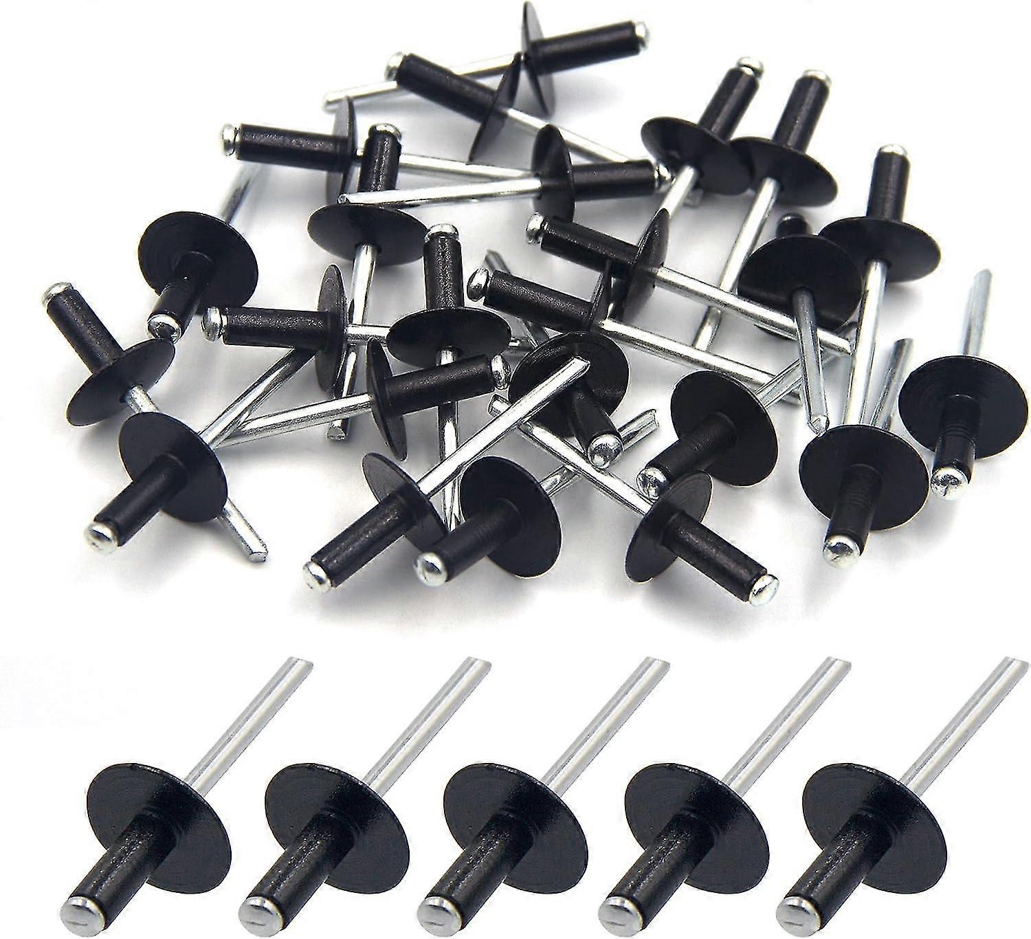 50pcs Aluminum Blind Rivets with Large Flange 4.8mm x 12mm, Pack of 50 (Black)-YNP