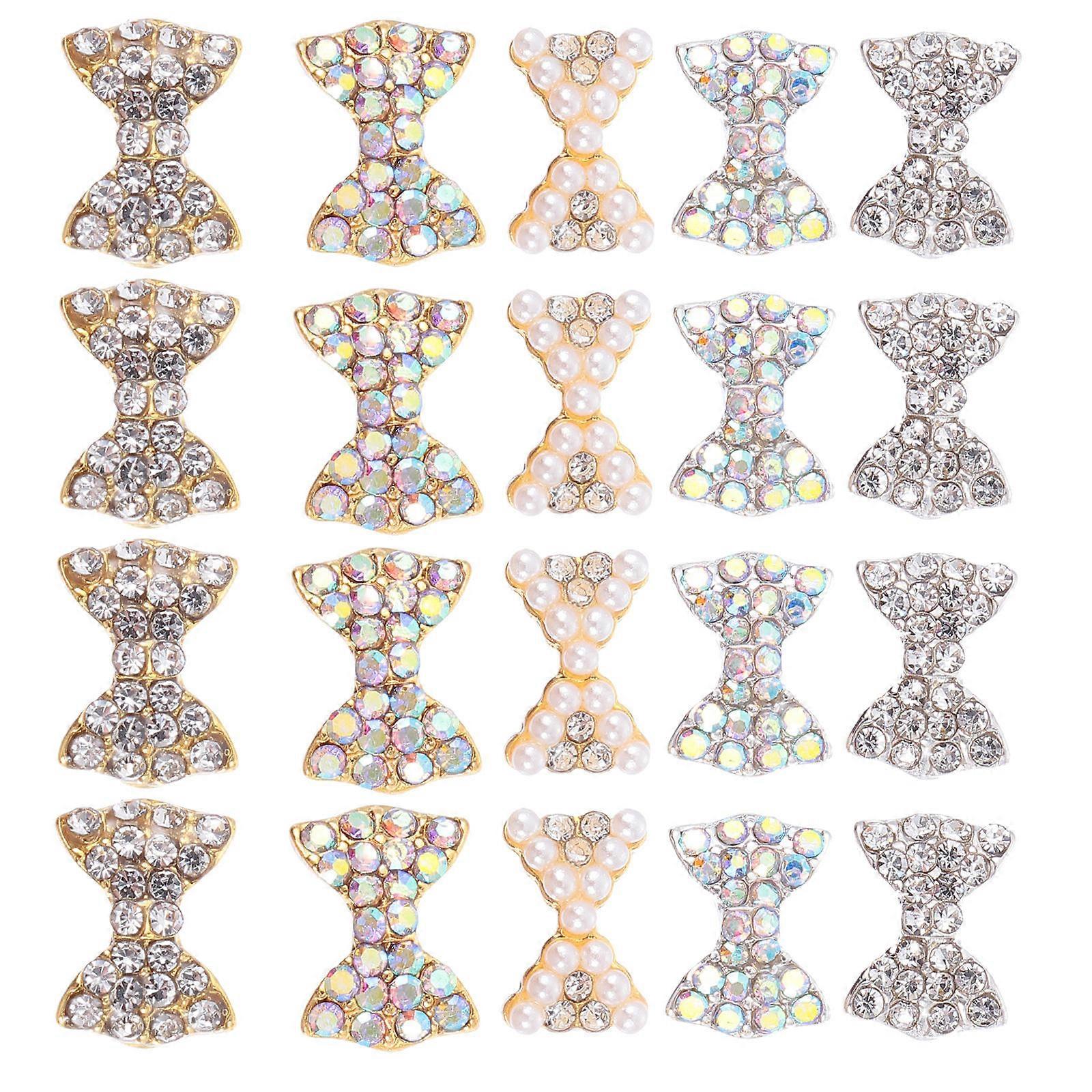 50pcs Nail Art Rhinestone Bow Charms DIY Nail Tips Decorations for Party, Stage, Graduation Glamorous Designs