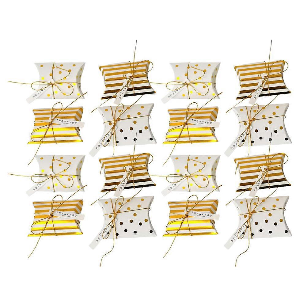 50pcs Polka Dot Wedding Candy Box Creative Pillow Box Stripe Design Chocolate Storage Case Gold Stamping Treat Box Party Favor Gift Box with Golden Ro