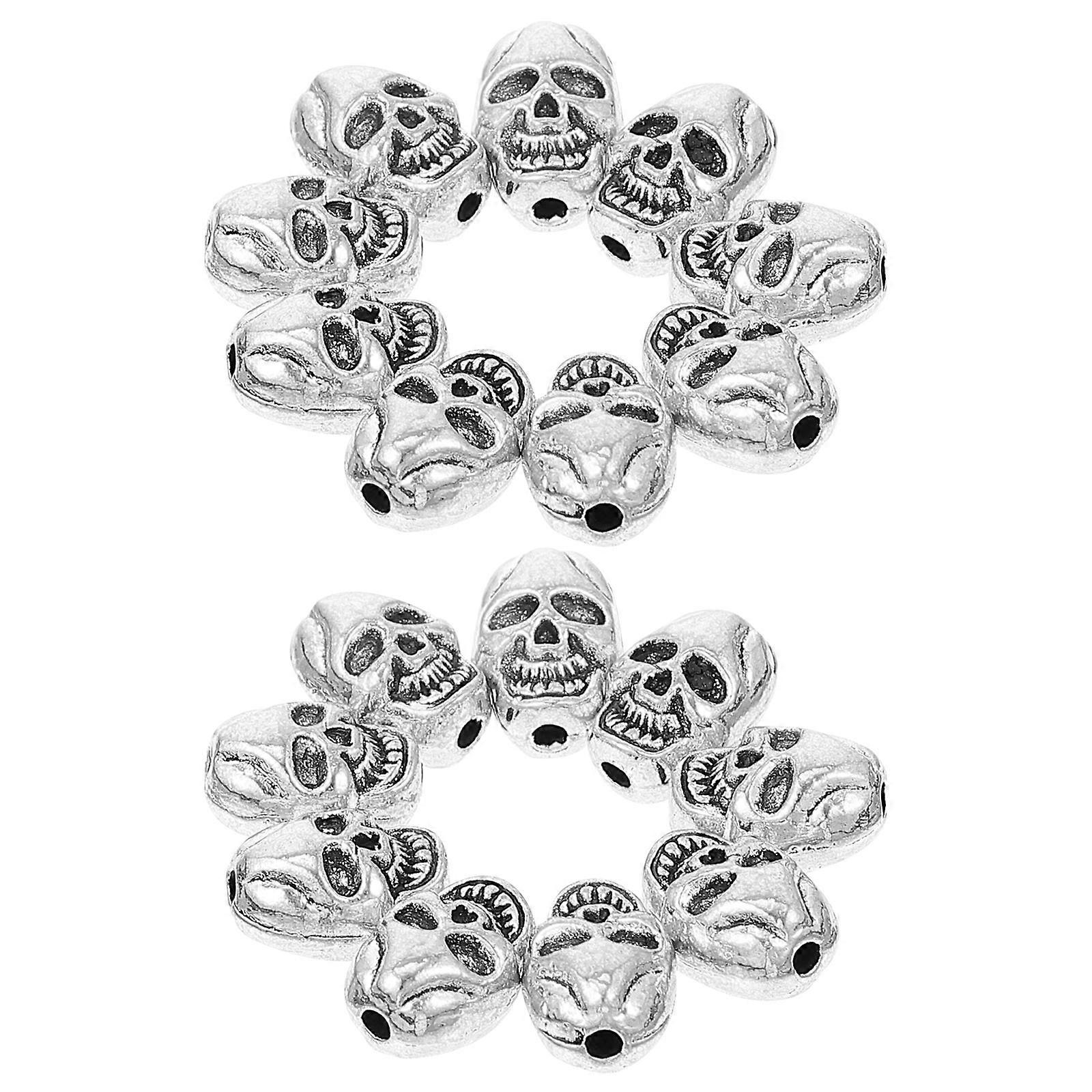 50pcs Silver Skull Spacer Beads for DIY Necklace, Bracelet, and Anklet Making – Glossy & Durable Jewelry Craft Accessories for Halloween Style