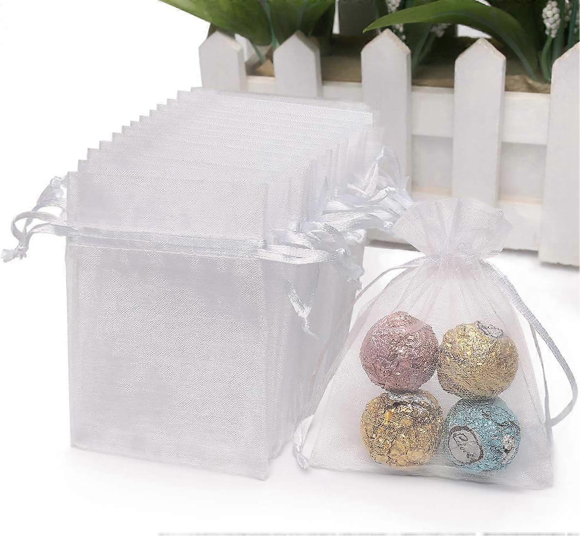 50 pcs Organza Drawstring Bags, Wedding Favor Bags with Drawstring Jewelry Pouches Party Festival Candy Bags (White, 5x7 in)