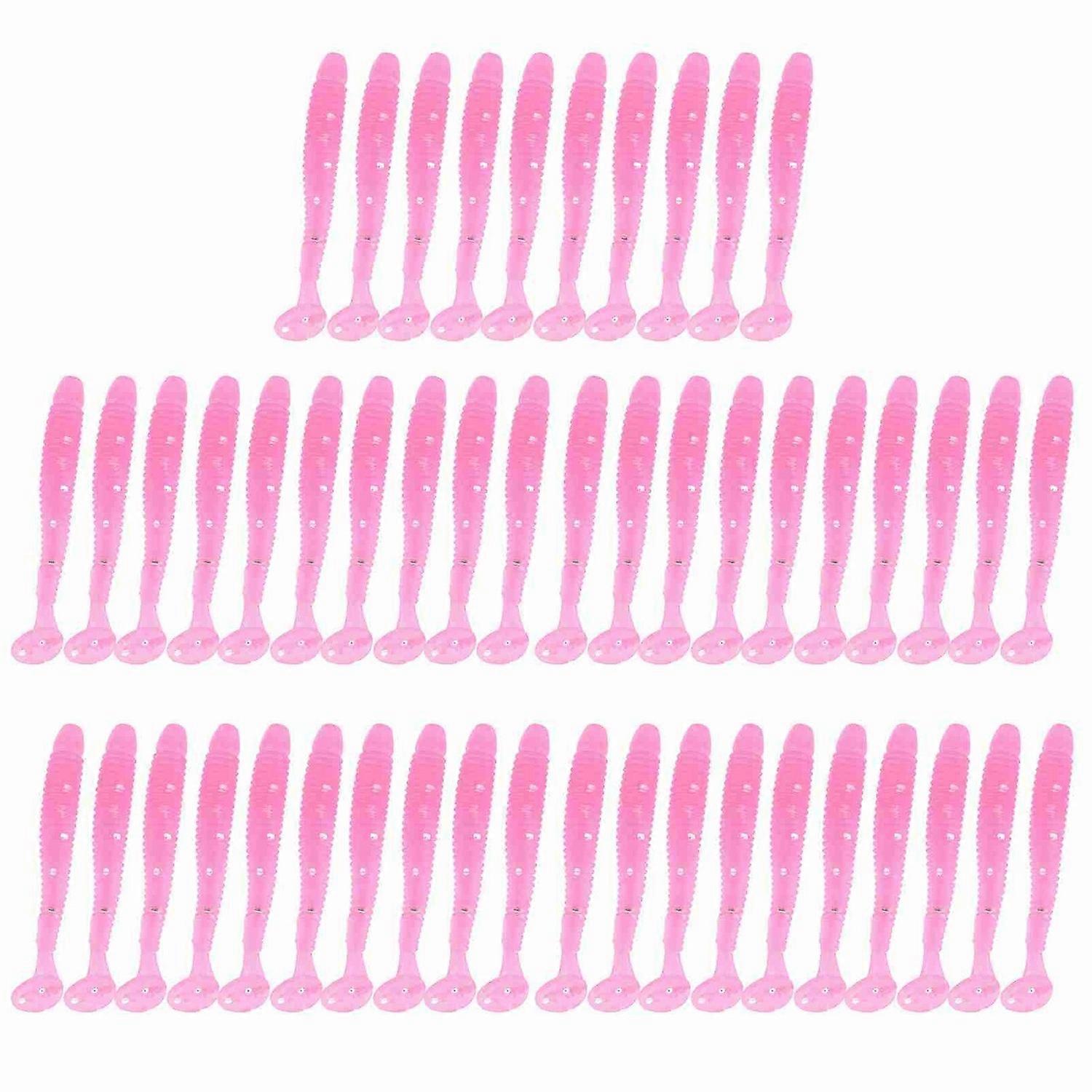 50PCS 5cm Soft Plastic Fishing Lures T tail Grub Worm Baits Fish Tackle Accessory Pink