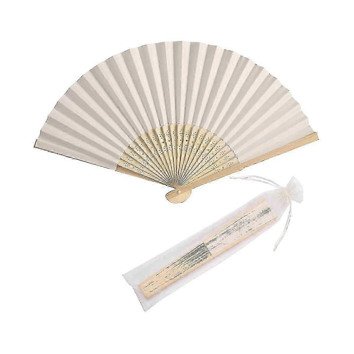 50Pcs Paper Hand Fan Bamboo Handheld Folded Fan Decorative Paper Fan Wedding Party Favors (Cream) hwy