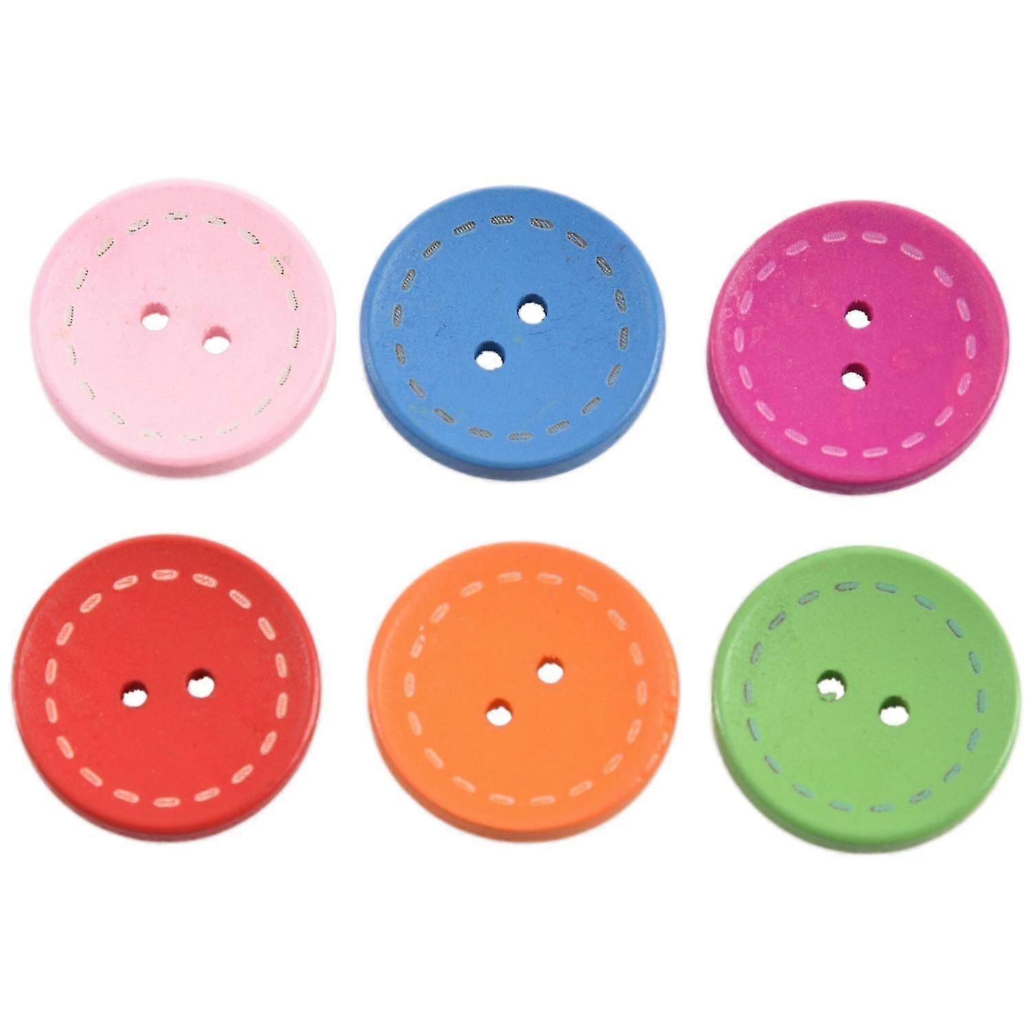 50pcs Mixed Holes Wood Sewing Buttons Scrapbooking 25mm(1") Dia