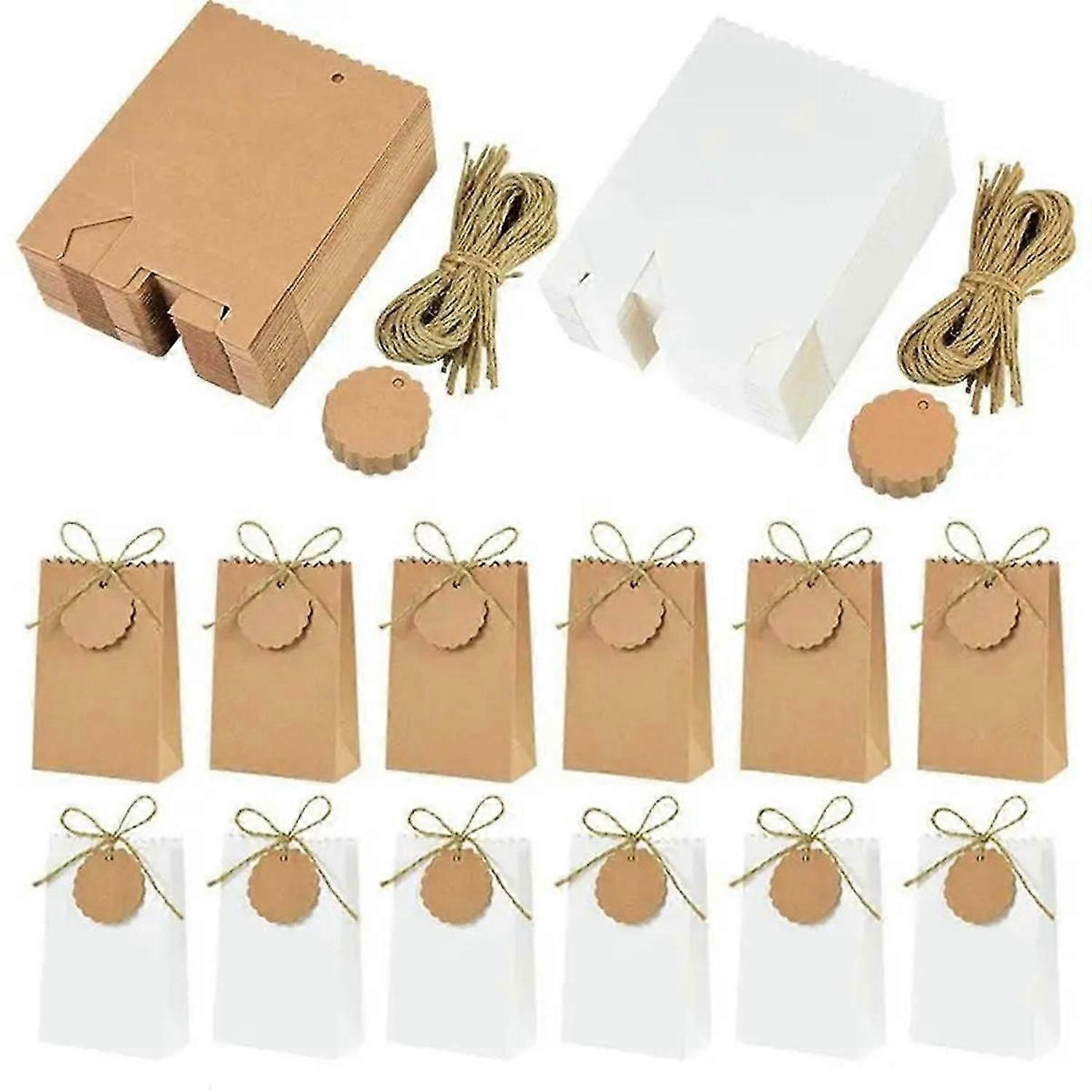 50Set Kraft Paper Gift Box with Rope Retro Candy Cookie Bag Wedding Birthday Supplies Packaging