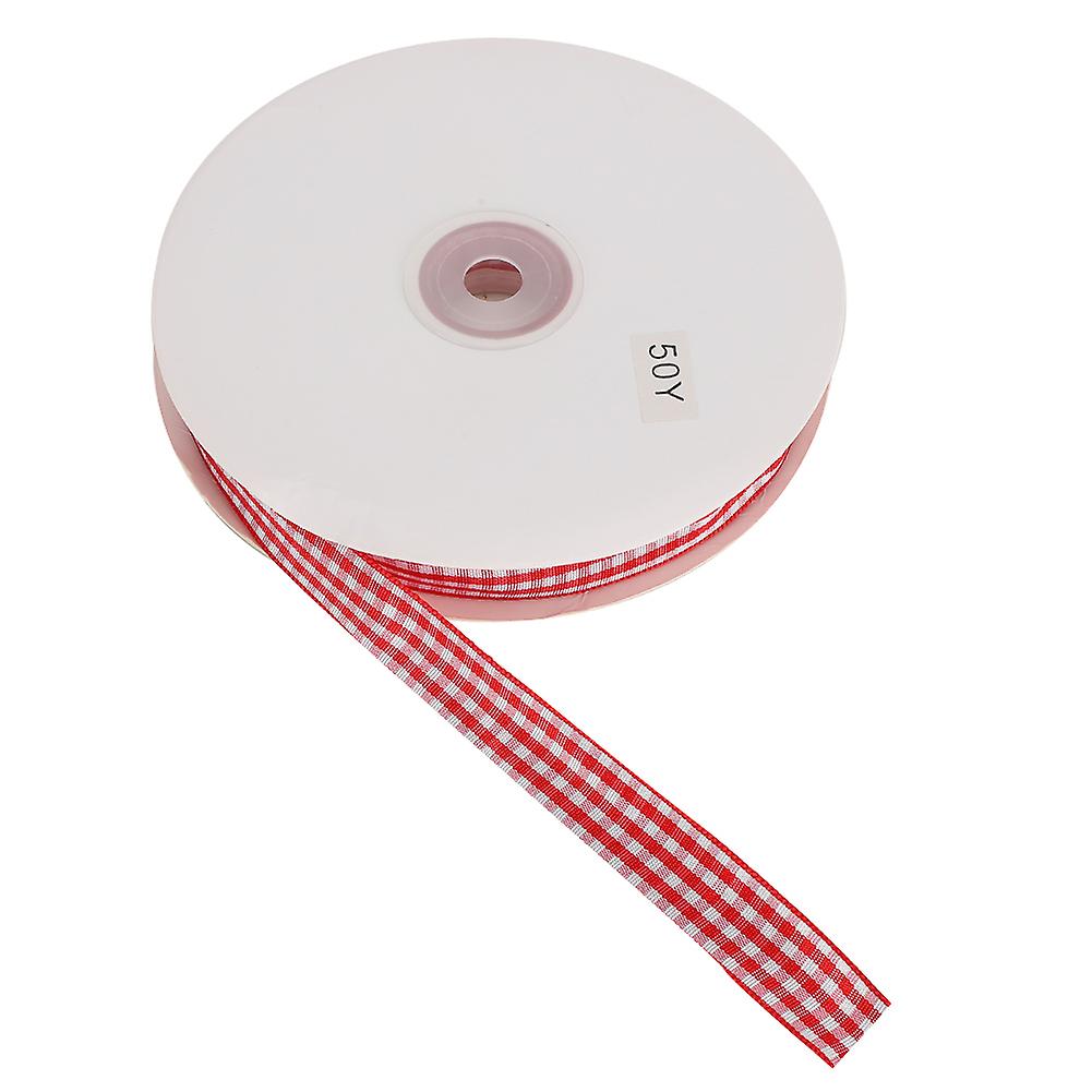 Checked Ribbon 50 Yards/Roll Making Bowknot Handicraft DIY Clothing Decoration AccessoriesRed and White