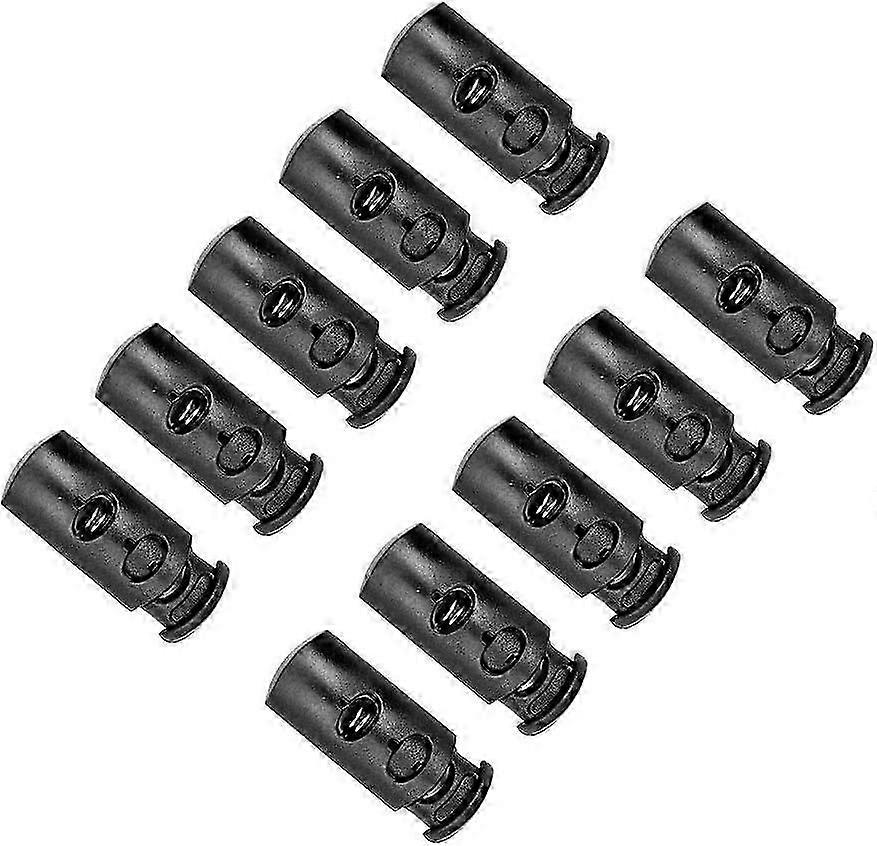 50 Pcs Black Plastic Toggle Double Hole Spring Loaded Elastic Drawstring Rope