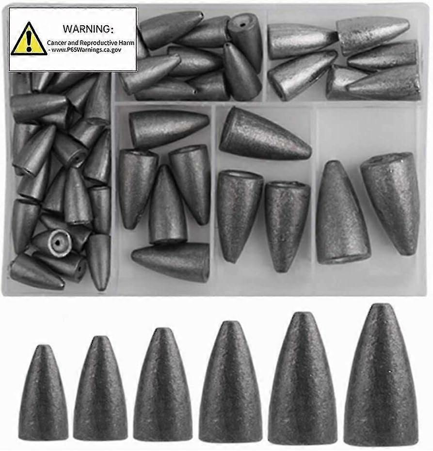 50pcs Fishing Sinkers Weights Kit Worm Fishing Sinker Weight Bullet Lead Sinkers Fishing Set