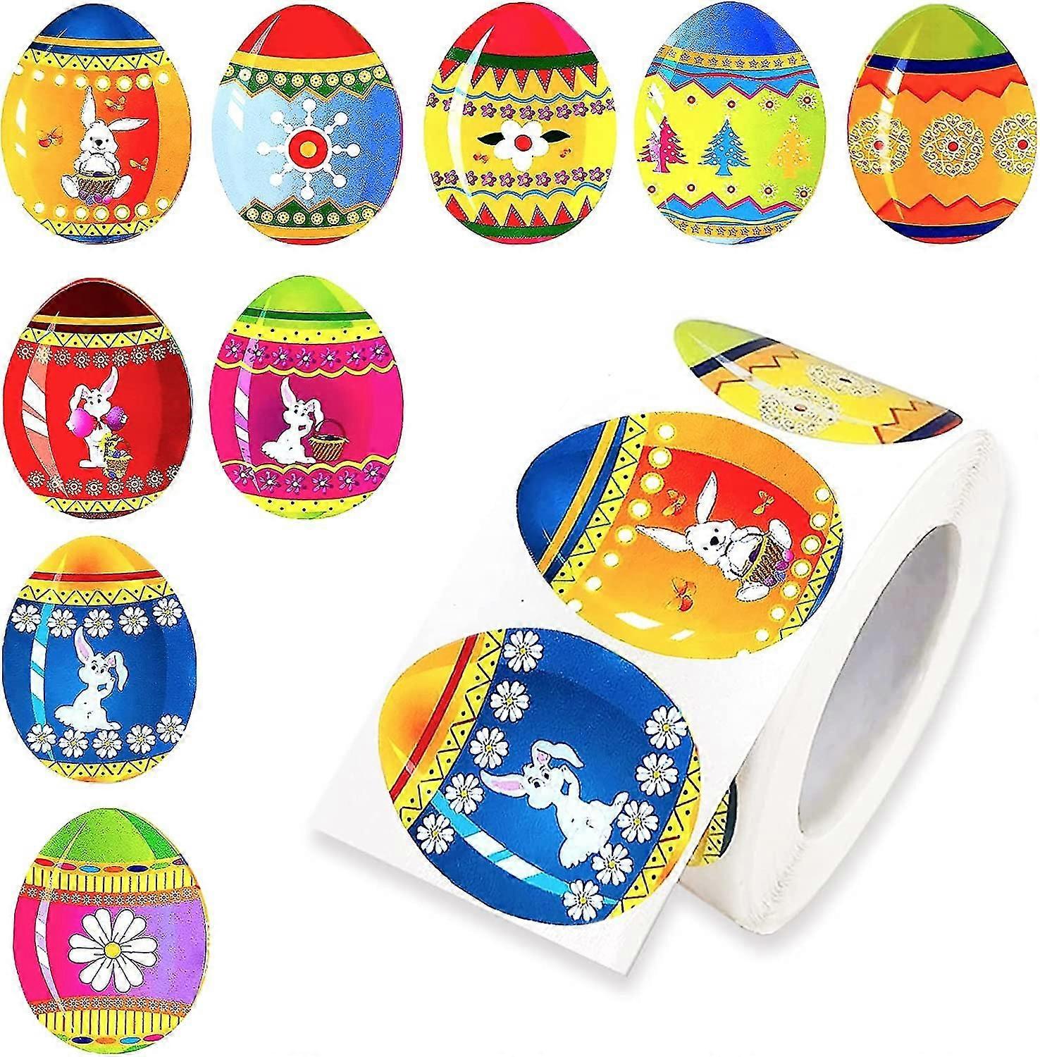 500PCS Easter Eggs for Kids Stickers Roll, 9 Patterns of Self-Adhesive Egg Bunny Stickers for Gift Bags Envelopes Easter Baskets and Holiday Parties