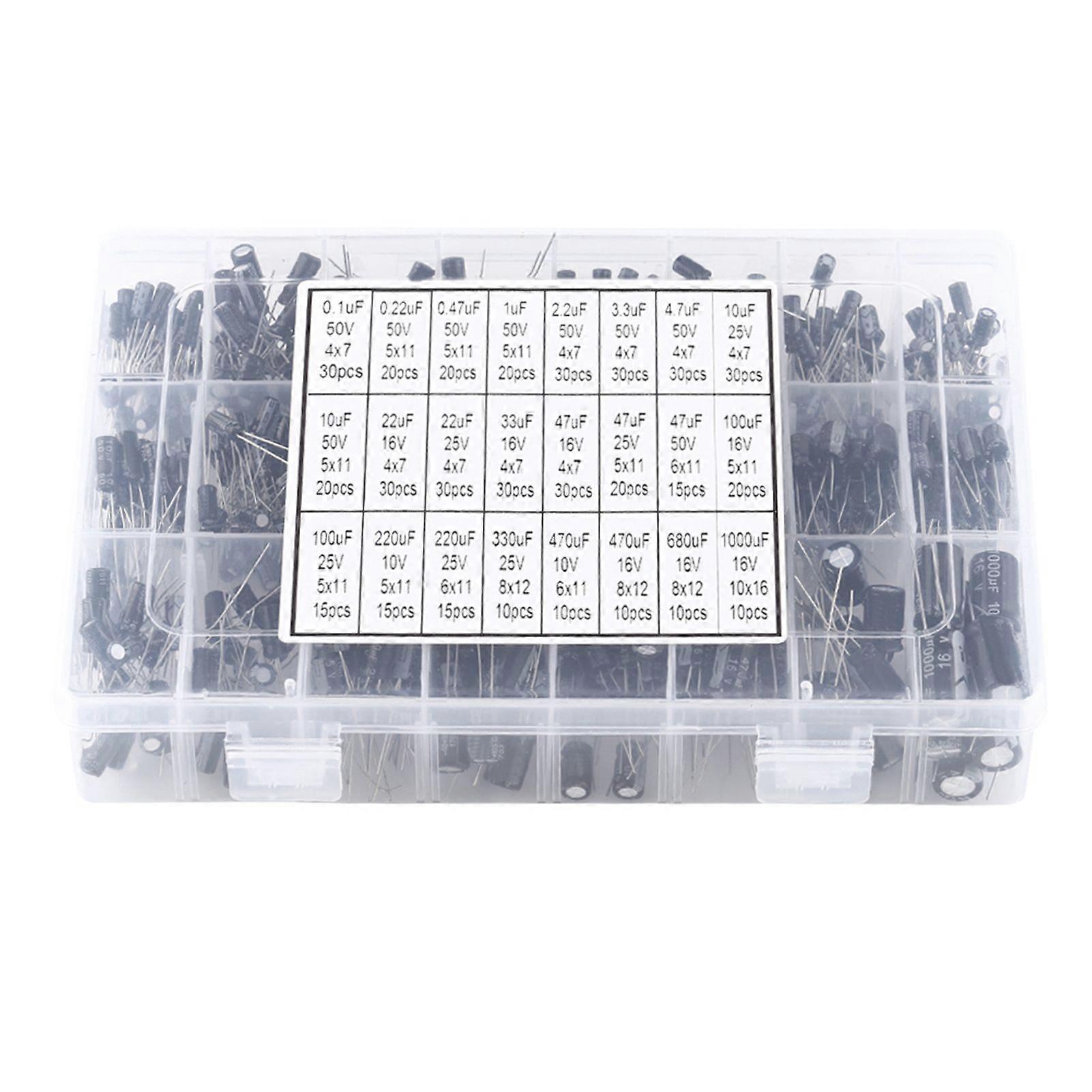 500pcs 24 Values Aluminum Electrolytic Capacitor Assorted Kit 10V~50V 0.1uF to 1000uF