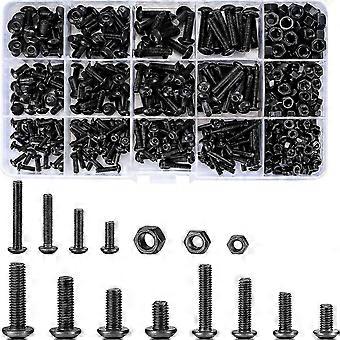 500 Piece Nut and Bolt Combo Set, Black Socket Head Screw Bolt and Nut Set