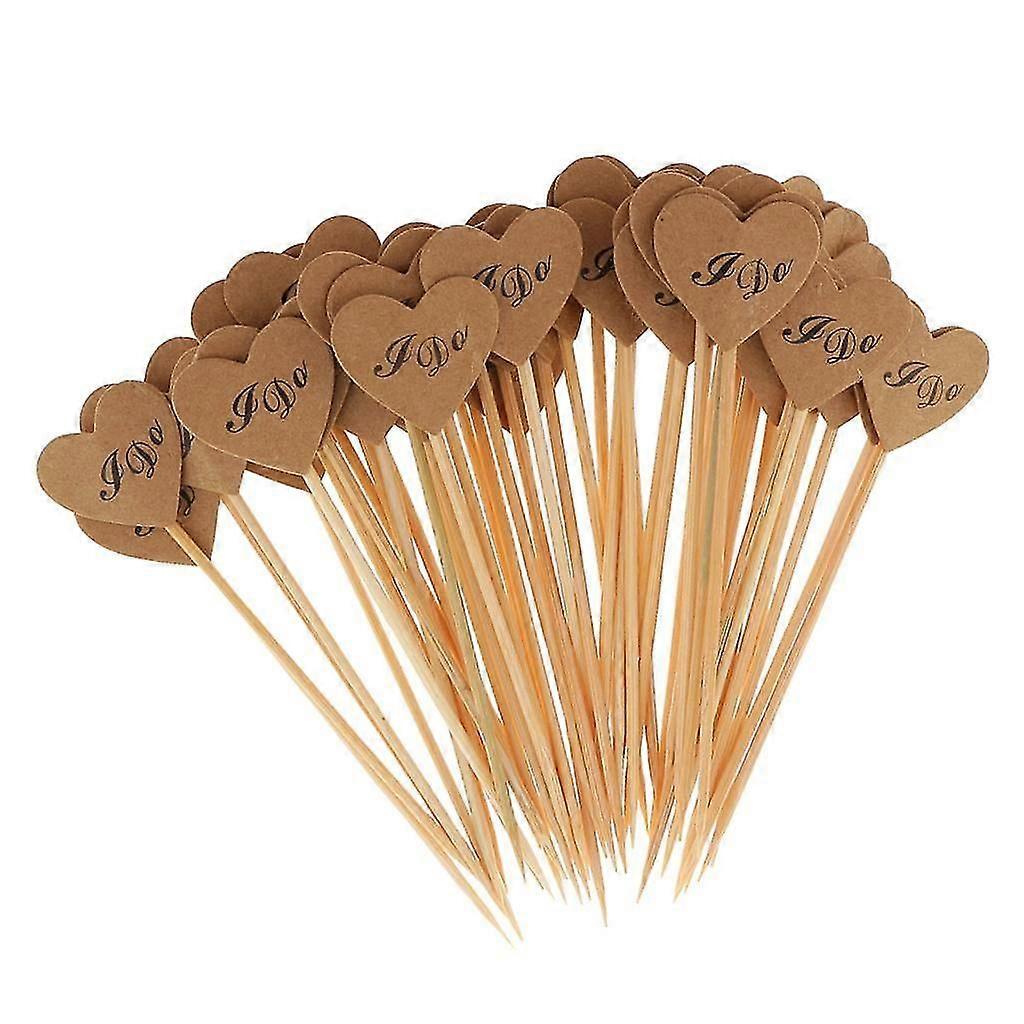 50x Vintage Kraft Paper Heart Cupcake Topper Food Picks Wedding Decor I Do